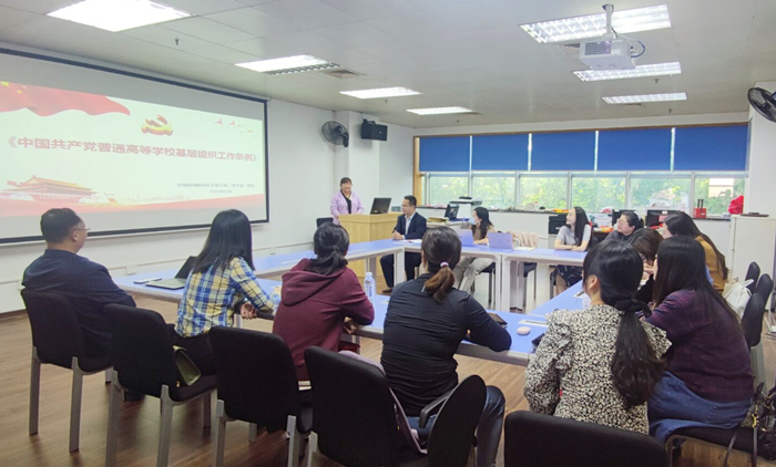 本次会议围绕“新征程呼唤新担当 新使命激励新作为”主题,分为两个阶段进行。在第一阶段的理论学习中,党支部杨喆书记带领全体党员进行理论文章学习——学习习近平总书记在中共中央政治局第十次集体学习上的重要讲话精神和《中国共产党普通高等学校基层组织工作条例》。