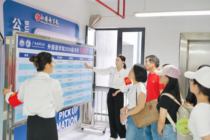 座谈会结束后,党员志愿者带领新生及家长参观学院教室及办公区域,详细介绍学院的历史沿革、师资力量、教学科研成果,以及学生社会实践和课外活动情况,分享宝贵的大学生活经验,帮助新生快速熟悉学院环境。